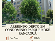 ARRIENDO DISPONIBLE! Departamento en 1er piso en CONDOMINIO PARQUE KOKE #RANCAGUA, a pasos de alameda y centro! Excelente conectividad hacia UNIVERSIDAD O'HIGGINS y mina el tenient...